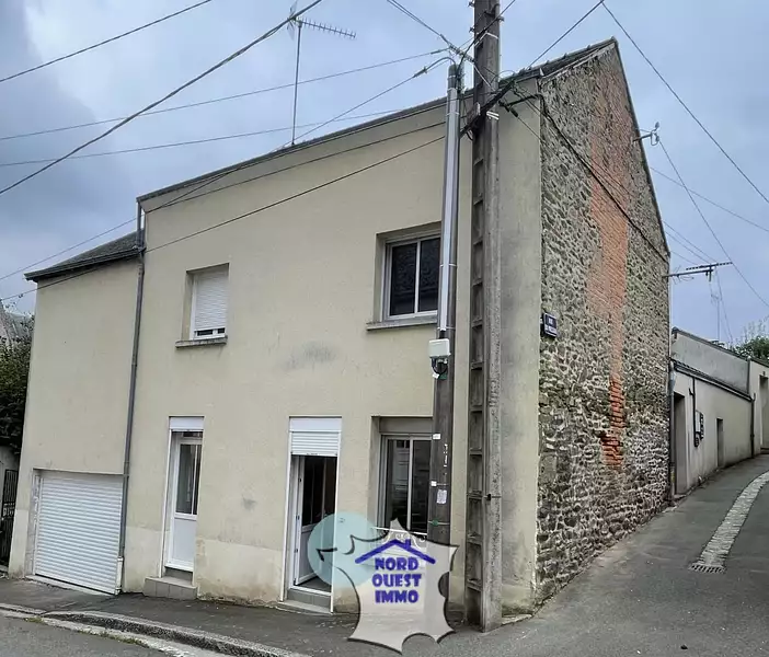 CENTRE-VILLE MAYENNE, maison sur trois niveaux offrant une entrée côté rue sur le séjour avec espace cuisine (34.16m2), un wc.