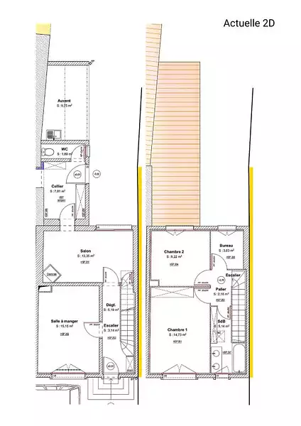À l'étage, deux chambres un bureau et une salle de bain attendent votre touche finale.