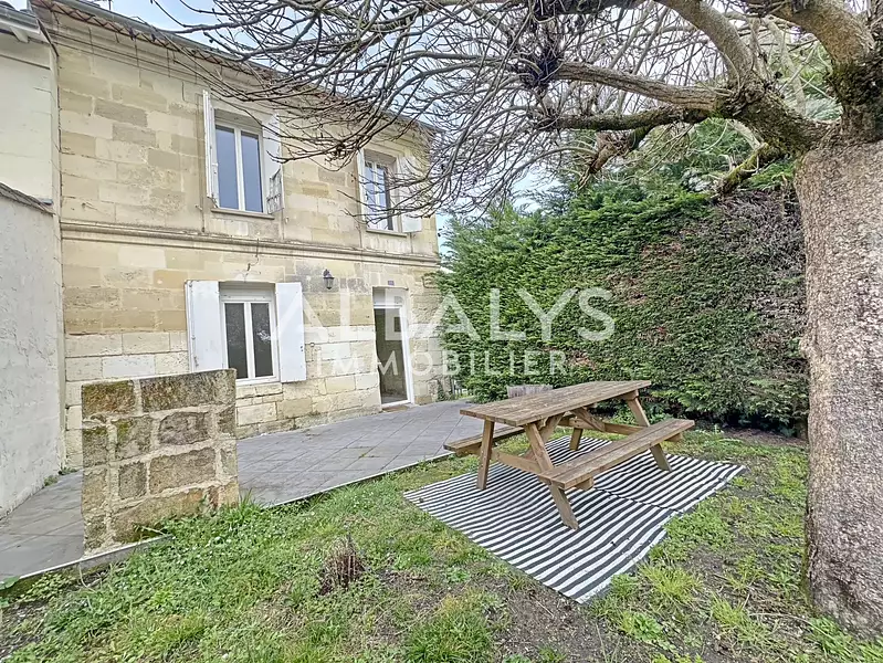 Maison de ville d'environ 85 m2 offrant un séjour donnant sur un jardinet, une cuisine indépendante, deux chambres et une salle d'eau.
