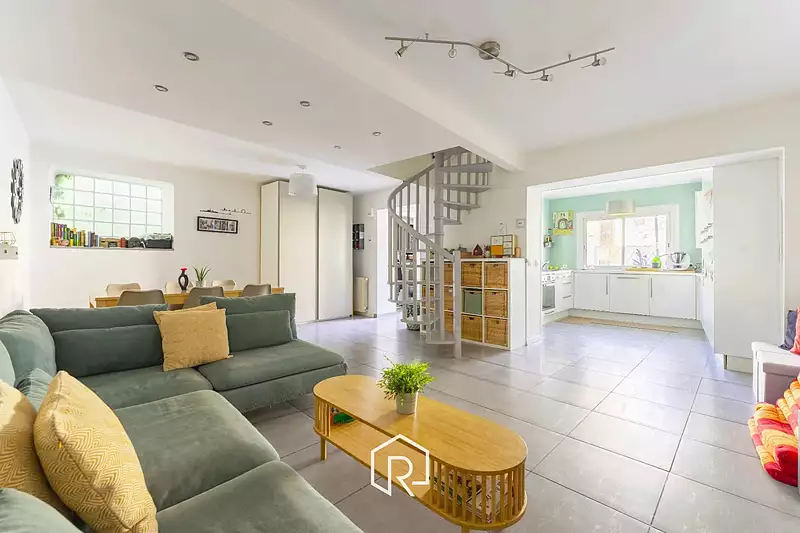 Le rez-de-chaussée s'ouvre sur un vaste séjour avec cuisine ouverte de près de 41 m² et donnant directement sur un agréable extérieur de 50 m², idéal pour profiter de moments conviviaux en toute tranquillité.