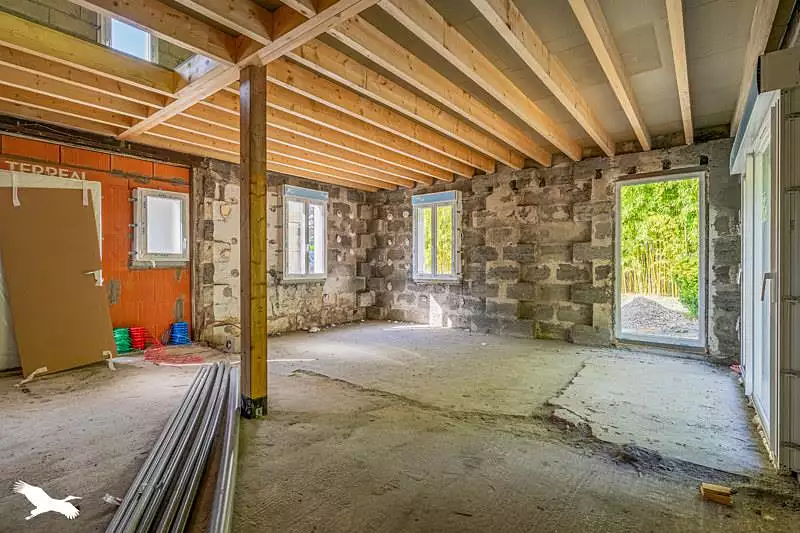 Maison R 1 hors d'eau hors d'air proche des commodités sur une grande parcelle en deuxième ligne avec la possibilité de réaliser en rez de chaussée une pièce de vie de 36 m² environ, un cellier, des toilettes et à l'étage trois chambres, une salle d'eau, des toilettes. Il est prévu deux stationnements. Gare de Blanquefort à 2km.
