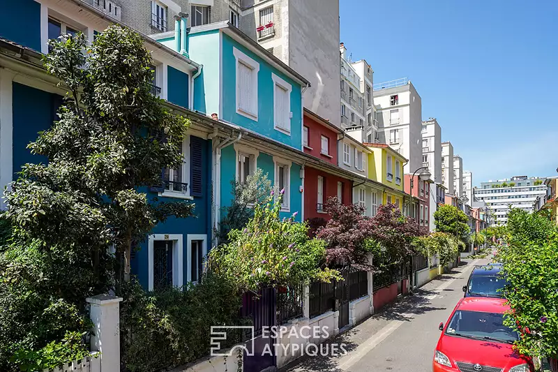 Située au coeur de la paisible et recherchée Cité Jouffroy Renault à Clichy, cette maison mitoyenne d'un seul côté développe une surface de 85m² répartie sur quatre niveaux. Érigée dans une allée privée datant de la fin du XIXème siècle, cette adresse rare offre un cadre de vie intimiste, au charme préservé. Véritable cocon atypique, la maison conjugue élégamment authenticité, matériaux nobles et touches singulières, avec une agréable cour et la possibilité de stationner un véhicule dans l'impasse. Le rez-de-chaussée s'ouvre sur une chaleureuse pièce de vie avec cuisine ouverte, où se côtoient des éléments uniques : sol en marbre vieilli, murs en pierres apparentes, poutres anciennes, poêle en fonte La Salamandre, et bar en cuivre chiné, issu d'un ancien restaurant. Une fenêtre ancienne, provenant d'un château du Périgord, ajoute à la singularité de l'ensemble. Au premier étage, une chambre, une pièce supplémentaire pouvant servir de bureau, de coin lecture ou de dressing, et une salle d'eau avec toilettes composent un espace nuit confortable, mis en valeur par un parquet en bois exotique (iroko). Le deuxième niveau, créé lors d'une surélévation en 2003, abrite une vaste chambre avec salle de bain intégrée, sublimée par un parquet exotique (ipé). En souplex, une chambre avec placards, une salle d'eau avec toilettes et une buanderie complètent les prestations. A l'extérieur, une agréable cour exposée ouest, prolonge la maison sur 2 cotés. Bordée de façades colorées, l'allée privée dans laquelle s'inscrit le bien offre un environnement serein et verdoyant. A moins de 10 minutes à pied, les gares de Clichy-Levallois et les stations de métro Mairie de Clichy et Porte de Clichy facilitent les déplacements. Commerces, écoles et infrastructures urbaines se trouvent également à proximité immédiate. Maison de caractère au coeur d'un lieu chargé d'histoire, ce bien singulier séduira les amateurs de cachet et d'authenticité, en quête d'un cadre de vie unique dans un quartier vivant et confidentiel. CLASSE ENERGIE : E / CLASSE CLIMAT : E Montant moyen estimé des dépenses annuelles d'énergie pour un usage standard, établi à partir prix moyens des énergies indexés sur les années 2021, 2022, 2023 (abonnements compris) : entre 2 400 euros et 3 320 euros. Les informations sur les risques auxquels ce bien est exposé sont disponibles sur le site Géorisques : https://www.georisques.gouv.fr Contact : Sophie YON- 06 18 36 65 84 - EI - Agent Commercial - RSAC : 837 580 166 Nanterre. Sophie YON (EI) Agent Commercial - Numéro RSAC : 837 580 166 - Nanterre.