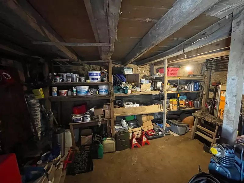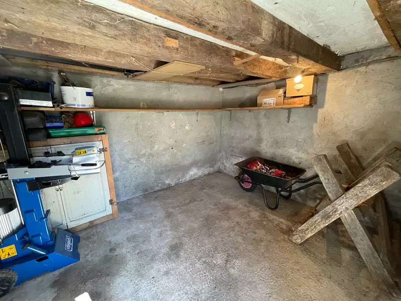 Grand garage de 25m2 avec 3,10 de hauteur permettant de garer un véhicule haut, atelier de 14,5m2 et cellier de 8m2.