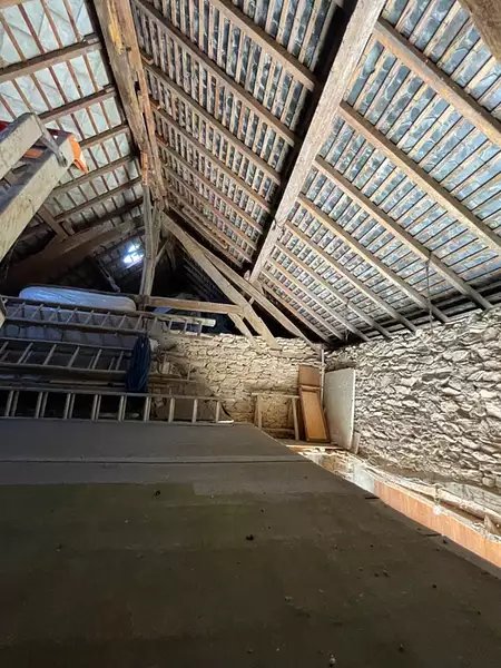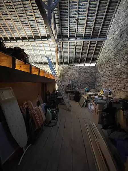 Cette maison de 85m2 environ est mitoyenne côté grange et offre un bel espace au rez-de-chaussée avec deux pièces contiguës de 14 et 16 m2 pouvant être réunies, une cuisine de 4,5m2, une salle d'eau et un wc.