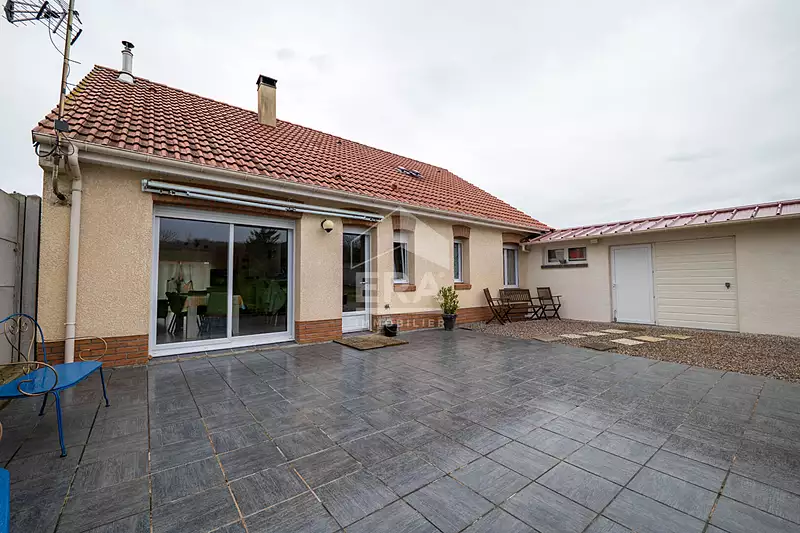 Située sur une parcelle de 1 303 m², cette maison individuelle de plain-pied propose une entrée donnant sur une pièce de vie lumineuse avec cuisine ouverte sur le salon-séjour. Elle dispose également de trois chambres et d'une salle d'eau fonctionnelle. A l'extérieur, vous bénéficierez d'un vaste garage de 40 m², d'une terrasse bien exposée et d'un grand jardin. Aucun travaux à prévoir : le bien est prêt à accueillir ses futurs propriétaires. Pour tout renseignement complémentaire ou pour organiser une visite, contactez Sophie Scrimali. Sophie SCRIMALI (EI) Agent Commercial - Numéro RSAC : 889579488 - Boulogne sur Mer.
