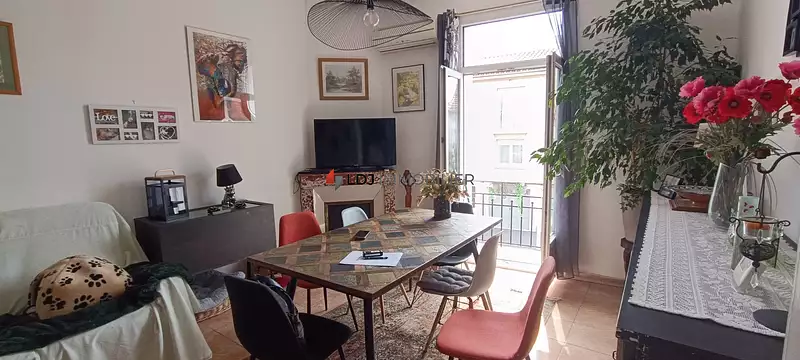 A l'étage, une pièce de vie donnant sur balcon filant, une cuisine aménagée équipée, 2 grandes chambres, une salle de bains avec wc.