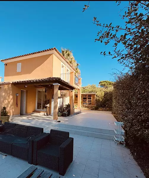 Dans un domaine sécurisé, à 10 minutes à pied de la plage et des commerces, villa de 85 m2 composée d'un séjour, cuisine équipée ouverte, 1 chambre de plain-pied avec salle d'eau et wc et 2 autres chambres avec salle de bains à l'étage.
