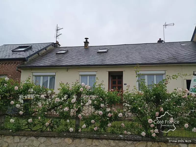 Dans un village de 1000 habitants avec commerces, écoles et collège, maison de 85 m2 de plain pied, sur une parcelle de 562 m2, idéale première acquisition ou investissement locatif.