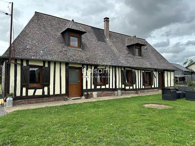 Balsane vous propose à la vente, cette Jolie maison normande située à pied d'un bourg avec école et petits commerces de proximité ( la poste , boulangerie, épicerie, charcuterie...), sur un terrain de 1700M2.