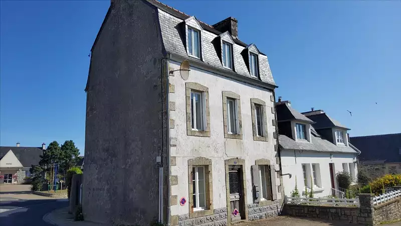Au centre bourg, à 10 minutes du HuelgoatUne maison en pierres sous ardoises mitoyenne d'un côté ayant:Au rez-de-chaussée: cuisine avec cheminée, débarrasA l'étage: palier, une chambre, salle de bains avec wc, débarrasAu deuxième étage: palier, deux chambresGrenier au dessusPetite cour à l'arrière