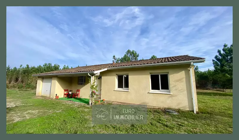Sur un beau terrain clos de plus de 2000m2 en lisière de forêt, je vous propose cette belle maison de 86m2, construite en 2003. Composée de entrée, grand salon/séjour avec cuisine ouverte ; 3 chambres, salle de bain, WC indépendants. Garage attenant.