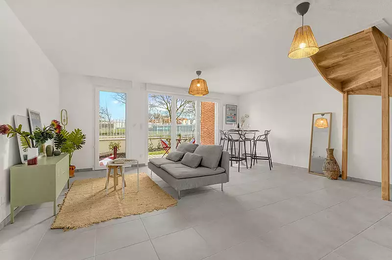 RETOUR A LA VENTE ! DISPONIBLE IMMEDIATEMENT ! LOGEMENT EN TVA 5.5% !!! [ résidence principale + conditions de revenus ] Maison T4 Triplex de 85m² avec 26m² de terrasse et jardin exposés SUD sans vis-à-vis, située dans une petite résidence intimiste dans le quartier prisé des ARGOULETS, au pied de la Voie Verte de la vallée de l'Hers. Rez-de-chaussée : -Séjour lumineux ouvert sur cuisine le tout donnant accès à une terrasse en bois et d'un jardin sans vis-à-vis. -Espace Cellier. -WC séparé. 1er étage : -2 grandes chambres avec placards. -Salle de bain avec double vasque et sèche serviettes. -Espace buanderie. -WC séparé. 2eme étage : -Suite parentale avec espace dressing. ************ 2 Garages fermés avec accès sécurisé. ************ Sébastien LARTIGUE LES CLEFS TOULOUSAINES