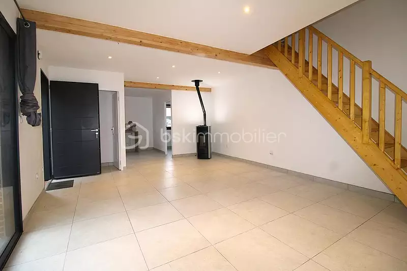 Au rez-de-chaussée, une vaste pièce de vie baignée de lumière de 30 m² vous accueille autour d'un poêle à granulés chaleureux. La cuisine ouverte, neuve et fonctionnelle, s'étend sur près de 10 m², complétée par un cellier-buanderie pratique et un WC séparé.