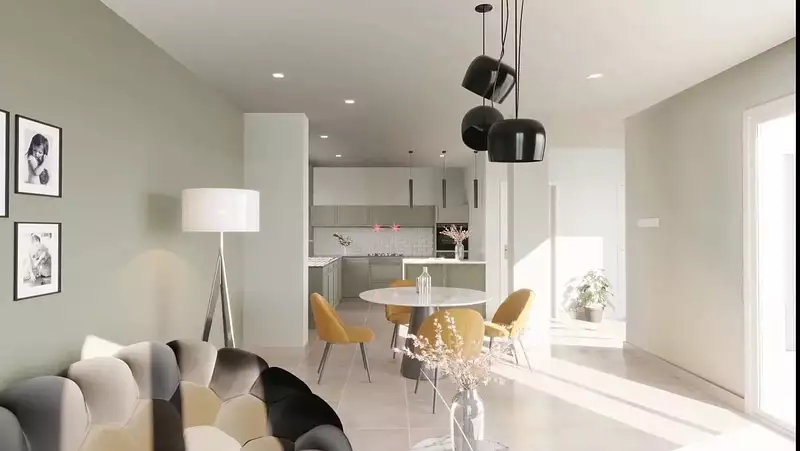 Elle offre une entrée, un espace de vie salon-séjour-cuisine contemporain qui saura répondre à tous vos besoins.