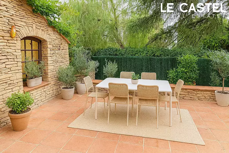Quand on pousse la porte, on découvre un grand séjour lumineux qui s'ouvre tout naturellement sur une terrasse plein sud, le genre d'endroit où l'on imagine déjà les petits-déjeuners d'été et les soirées qui s'éternisent.
