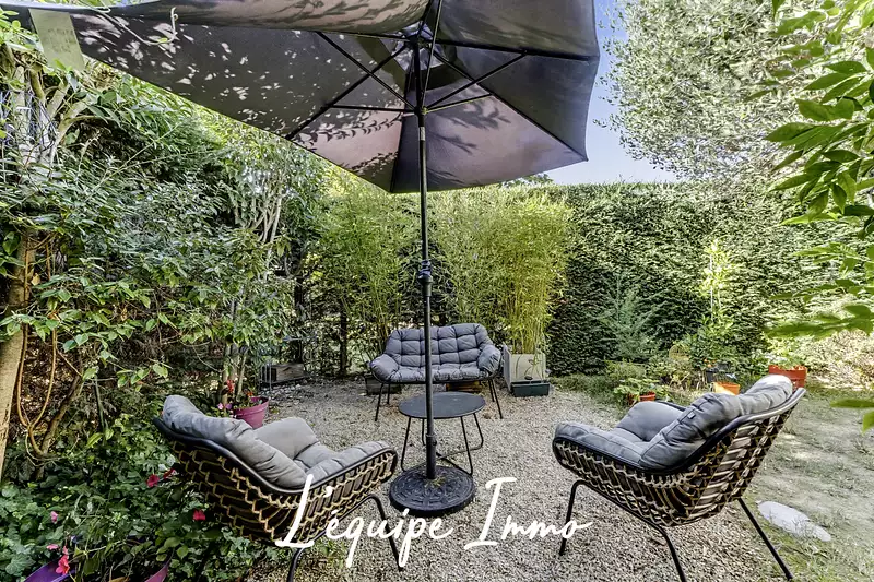 A l'extérier, laissez vous charmer par le jardin intimiste, arboré et soigneusement entretenu, offrant de doux moments de détente à l'ombre de la belle treille de glycine, à l'abri des regards, dans une atmosphère calme et apaisante.