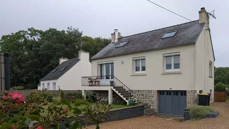 À vendre à proximité du bourg de Plougonven, maison sur cave parfaitement entretenue comprenant au rez-de-chaussée surélevé : cuisine, salle à manger, salon, chambre avec placards, salle d'eau avec WC.