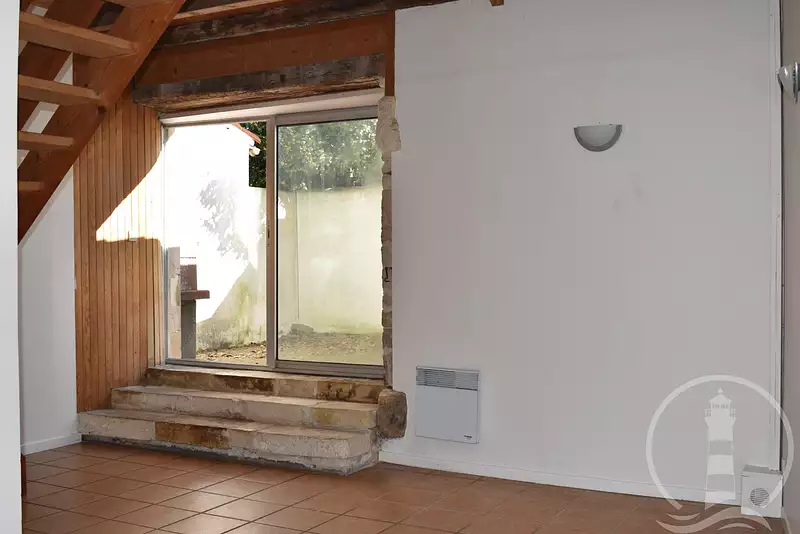 Maison ancienne comprenant une entrée par le garage, une pîèce de vie avec cuisine ouverte, cour exposée sud. A l'étage, un palier desservant deux chambres, une salle de bain, wc et une pièce ouverte donnant accès à un espace mezzanine.