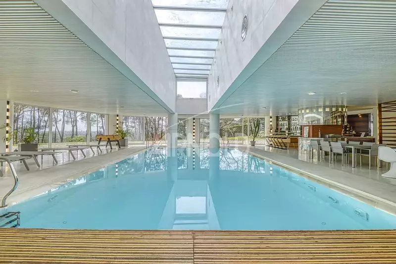 Véritable lieu de bien-être, ouvert sur le jardin par de larges baies vitrées, vous y trouverez également un sauna haut-de-gamme Tylö, un hammam, ainsi qu'une salle de cinéma qui complètent les agréments de cette propriété hors normes.
