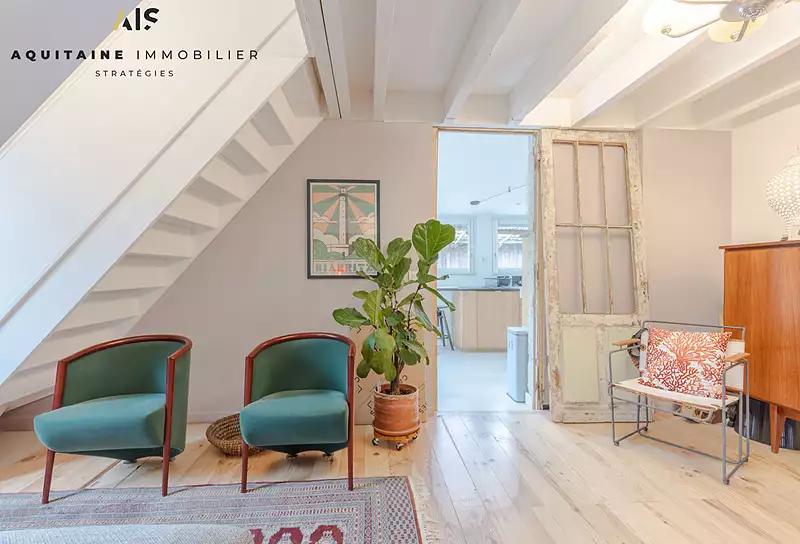 AQUITAINE IMMOBILIER STRATEGIES - NOUVEAUTE - BEGLES MAISON T2/T3 87 M² + TERRASSE 26 M². Notre agence vous propose à la vente cette charmante maison de 87 m² environ entièrement rénovée avec gout et matériaux de qualité, située à Bègles. La maison se compose d'une belle et spacieuse pièce de vie avec poêle à bois de 32 m² environ, d'une grande cuisine aménagée et équipée très fonctionnelle. une grande salle de bain avec double vasque. A l'étage, vous profiterez d'une grande chambre de 19 m² environ et d'une mezzanine avec coin multimédia (possibilité bureau, dressing, espace télétravail). Une terrasse de 26 m² ainsi qu'une dépendance de 7 m² environ viennent compléter la prestation de cette magnifique maison. DIFFERENTES POSSIBILITES D AMENAGEMENTS S OFFRENT A VOUS (CHAMBRE SUPPLEMENTAIRE...). AQUITAINE IMMOBILIER STRATEGIES Mr PORTRON Laurent Directeur Agence AQUITAINE IMMOBILIER STRATEGIES Adresse : GARE DE BORDEAUX SAINT JEAN PAVILLON NORD PARVIS LOUIS ARMAND CS 21912 33082 BORDEAUX CEDEX 33800 BORDEAUX RCS N° 821229291 SARL au capital de 1000 euros - Immatriculée au RCS de Bordeaux - SIRET N° 821 229 291 00025 - Carte Professionnelle Transaction : CPI 3301 2016 000 009 960 Délivrée par : Bordeaux Le 12/07/2022 Garant : GALIAN 89, Rue de la Boétie 75008 PARIS Garantie : Transaction Sans maniement de fonds