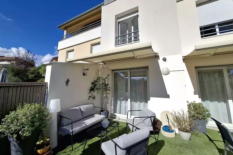 Située dans un quartier résidentiel de Cessy, belle maison récente en duplex de type 4 avec garage et grande terrasse exposée sud-ouest.
