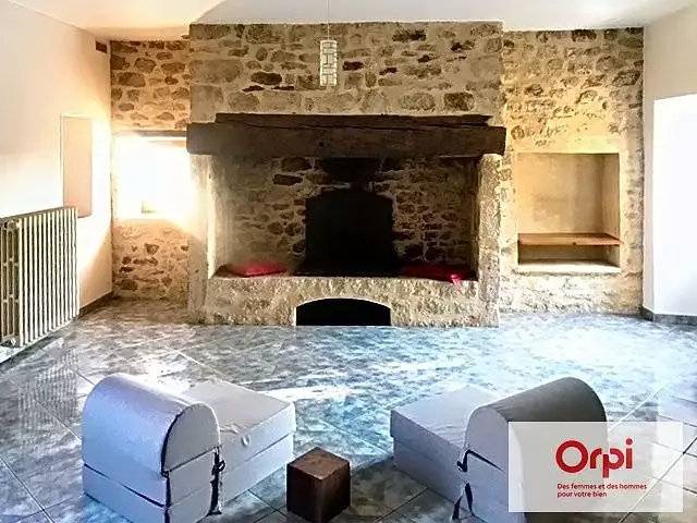 À l'étage, vous profiterez d'un agréable salon agrémenté d'une superbe cheminée en pierre, apportant charme et convivialité. Deux chambres, une salle d'eau et des toilettes complètent ce niveau.