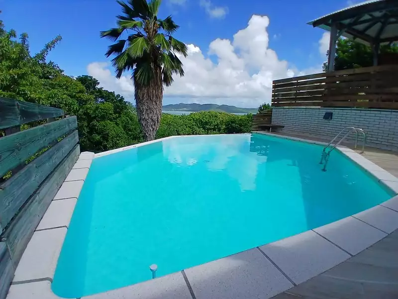Orpi Ducos vous propose cette très belle maison T4 de plain pied avec grande terrasse, carbet, piscine et vue mer imprenable, comprenant :