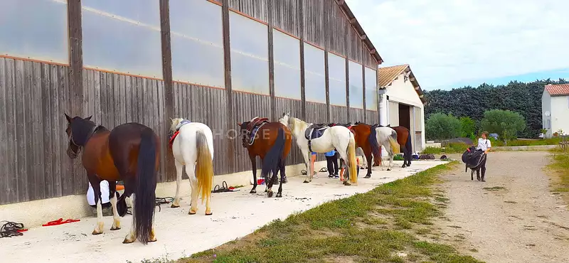 De construction récente, l'ensemble propose une écurie intérieure de 20 boxes, un manège couvert (20x40m), une carrière CSO (50x50m) et un hangar de stockage. Les terres d'un seul tenant offrent un beau potentiel d'exploitation avec de nombreux paddocks et d'autres espaces ombragés.