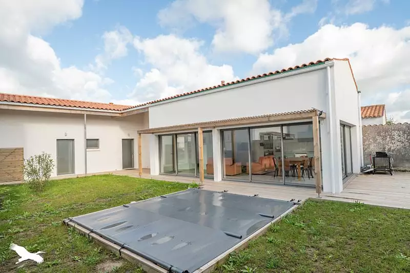 Sur Saint Denis d'Oléron, les commerces, la plage à pied, une maison neuve offrant un espace de vie spacieux, lumineux, idéal pour un beau projet familiale composé de deux chambres en indépendance avec salle d'eau, une grande pièce de vie avec une chambre et sa salle d'eau, jardin clos et piscine. À visiter!