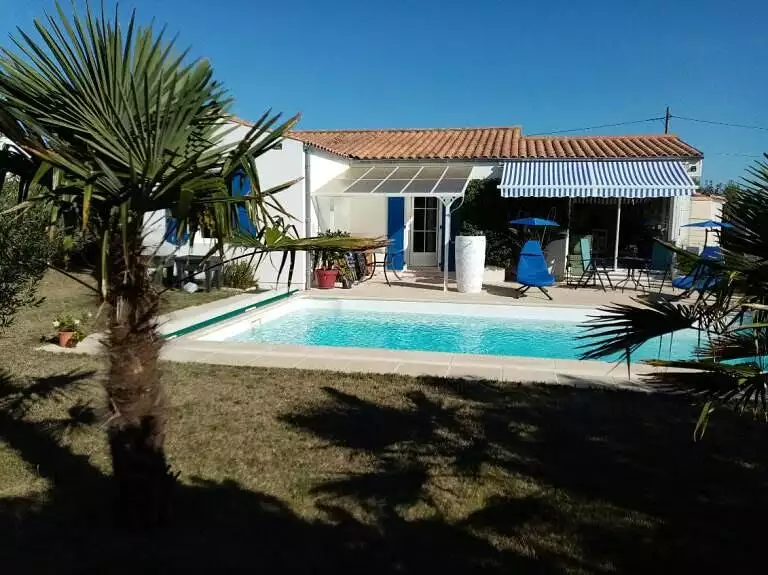 SAINT GEORGES D'OLÉRON - Côte Ouest, dans un environnement calme et reposant, maison de plain pied comprenant un séjour avec cuisine équipée, trois chambres, une véranda ainsi qu'une salle d'eau. Piscine 8.5 x 4. Agréable jardin paysagé sans vis à vis. Plage à pied !