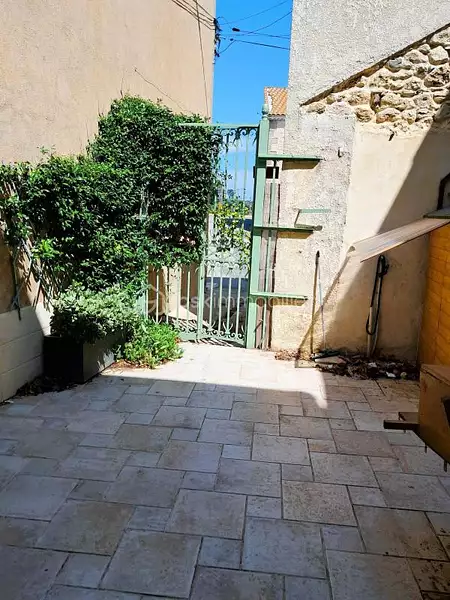 Belle cour extérieure de 32,60m² avec cabanon en bois de 2,40m² - un magnifique portail en fer forgé d'époque