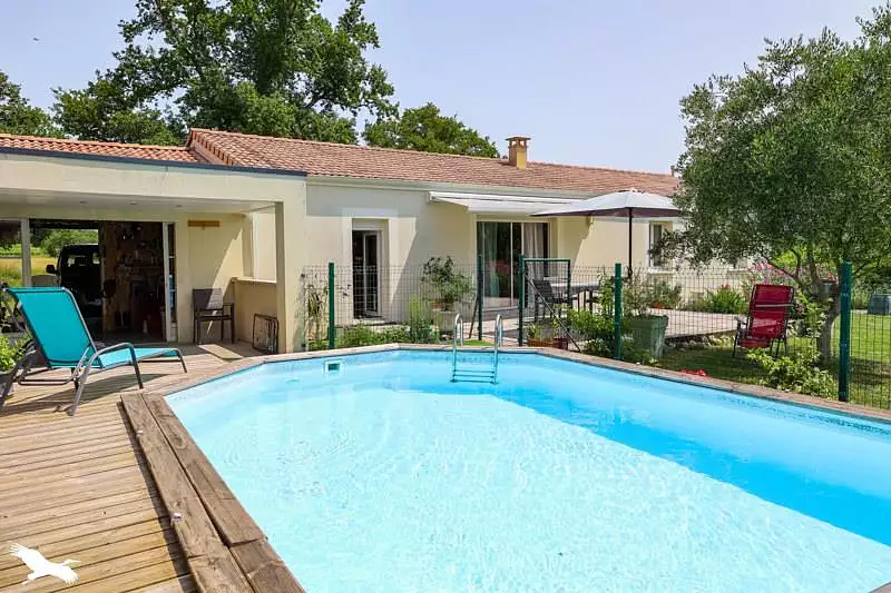 Plain-pied de 2013 offrant de beaux volumes lumineux. Séjour de 40 m², 3 ch, aucun travaux à prévoir. Piscine, terrain clos de plus de 1900 m² à seulement 5 mn des commodités.
