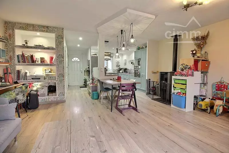 Après le dégagement d'entrée, vous bénéficierez d'une belle pièce de séjour très chaleureuse de 38m² avec une cuisine ouverte (A/E de 2022). Un cellier attenant vous permettra le stockage des besoins quotidiens.