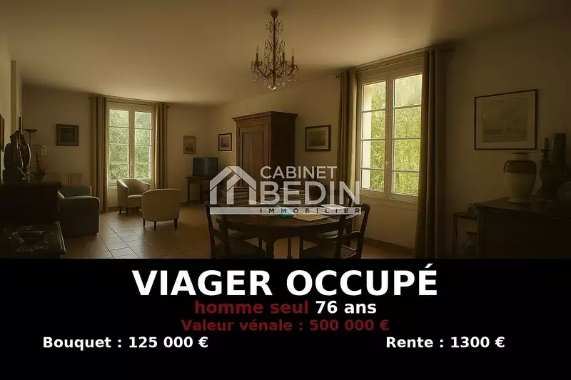 BORDEAUX CAUDERAN. Vente en viager occupé. Homme, 76 ans. Bouquet : 100 000 € - Rente : 1 300 € mensuels. Valeur vénale : 500 000 €.
