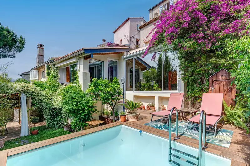 L'extérieur est agrémenté d'une petite PISCINE, d'une cuisine d'été et de terrasses pour profiter agréablement des douces soirées cagnoises.