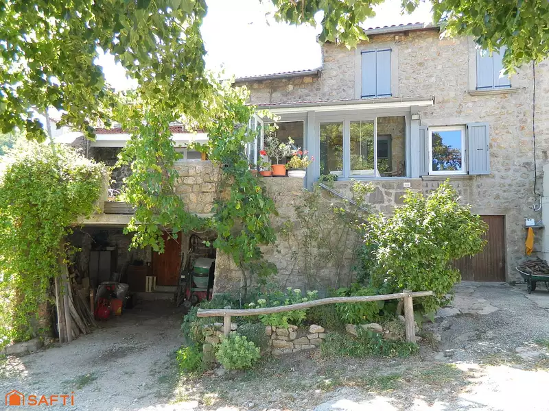 C'est au cœur d'un hameau en pleine nature ou règne le calme que ce situe cette belle bâtisse en pierres. Sa véranda et sa terrasse orientée plein sud offre une superbe vue dégagée. La mitoyenneté existe certes mais n'est pas gênante .
