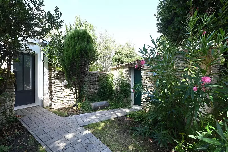 Son double accès permet de profiter pleinement d'un patio pour déjeuner et d'un jardin clos de vieux murs. Un local en pierre du pays vient compléter cet ensemble plein de charme.