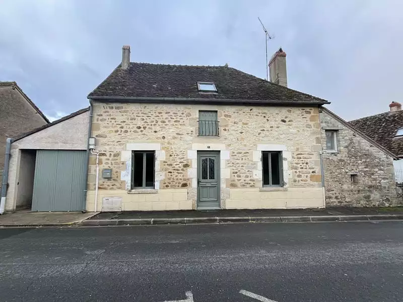 Au coeur du village, maison de caractère sans travaux comprenant séjour avec insert, cuisine, deux chambres, salle de bains avec wc, buanderie, grange, dépendances, cour fermée sans vis à vis et jardin.
