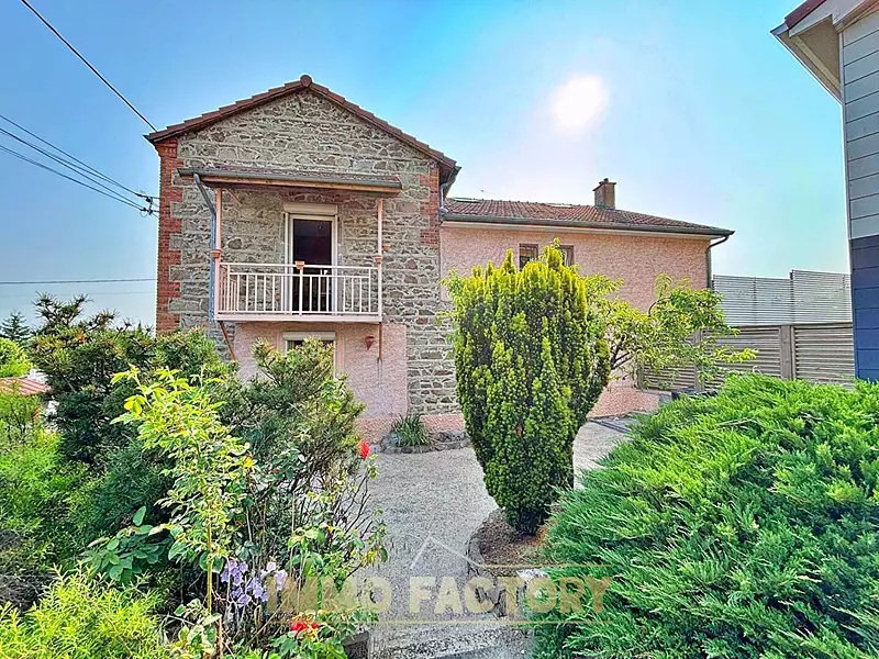 Région Auvergne - Rhône-Alpes - Département Loire (42) Votre agence immobilière IMMO FACTORY à Roanne vous propose, sur la commune de Ouches (limite Villerest), Cette charmante maison en pierres apparentes, mitoyenne d'un côté, comprenant un séjour - salon avec cheminée insert, poutres apparentes et cuisine ouverte d'une superficie totale d'environ 42 m², trois chambres dont une sous rampants, une salle de jeux ou un bureau, une salle de bains spacieuse avec douche, baignoire et balcon, un W.C. séparé avec lave-mains, une chaufferie, un cagibi et une cave à vin. Cour avec terrasse. Menuiseries aluminium double vitrage avec volets roulants électriques. Chauffage central avec chaudière à condensation. Possibilité garage à louer juste à côté et stationnement libre devant la maison.
