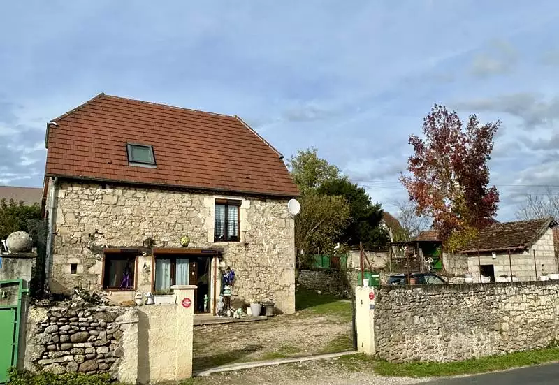 Maison en pierre avec vie de plain pied composée en RDC d'un salon avec cuisine aménagée ouverte et poêle à pellets, un WC, une salle d'eau, un bureau et un garage. À l'étage, 1 chambre mansardée. Bel extérieur composé d'un abri de jardin, d'une terrasse et d'une pergola. Vue sur le château. À voir rapidement !
