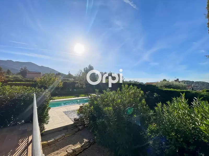 Orpi Mougel Immobilier vous propose à la vente cette très jolie villa de plain-pied, 4 pièces, édifiée sur un terrain de 900 m2 sur les hauteurs de Roquevaire.