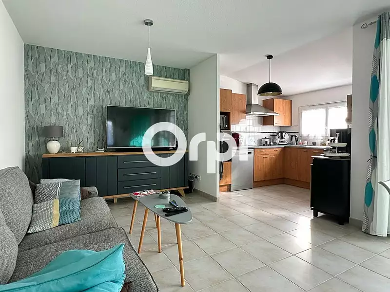 Elle est composée d'un beau salon-séjour exposée Sud-Ouest ouvrant sur une véranda, d'une cuisine aménagée et équipée, de deux chambres, salle d'eau et wc.