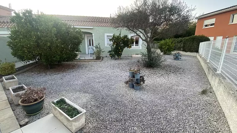 Buanderie, garage. Terrasse ombragée couverte, terrain plat et clos.