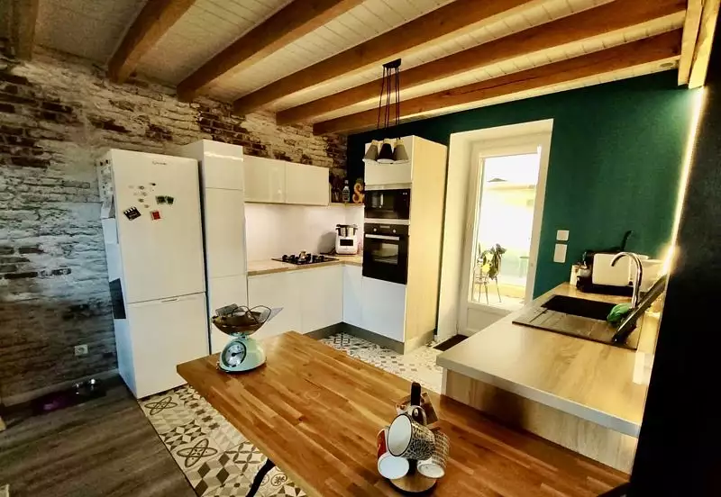 A découvrir, charmante maison en pierre rénovée avec goût. Elle se compose d'une grande pièce de vie avec une cuisine équipée qui donne sur une terrasse couverte, une chambre, une salle d'eau, un wc ainsi qu'une buanderie. A l'étage, deux belles chambres avec rangements. Terrain plat et clos avec portail motorisé. Aucun travaux. Proposition d'aménagement virtuel non contractuelle en dernière photo.