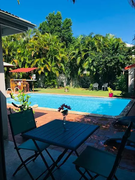 Située dans le secteur recherché et calme de Moudong cette villa T4 propose un cadre de vie agréable avec un studio entièrement équipé et aménagé idéal pour accueillir famille ou amis ou pour générer un revenu locatif la maison séduit par son bel espace extérieur comprenant une grande terrasse conviviale et une piscine entourée de verdure parfaite pour profiter du climat et partager des moments de détente la cuisine séparée est fonctionnelle et la pièce de vie spacieuse permet d'imaginer facilement différentes configurations selon les envies deux chambres se partagent une salle d'eau tandis que la suite parentale dispose de sa propre salle d'eau l'ensemble offre un bon potentiel pour être réaménagé facilement selon les besoins et les goûts de chacun cette villa allie confort calme et possibilités d'évolution dans un environnement agréable proche des commodités et des axes principaux