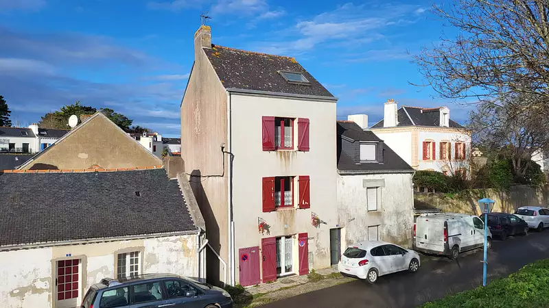 Maison de ville de 89m² établie en rez de rue sur 4 niveaux et située dans une rue non commerçante de Le Palais . Au rez de chaussée, vous trouverez la cuisine, la pièce de vie et une salle d'eau. A chaque étage, un couloir avec des placards de rangement dessert une chambre dont l'une dispose d'une salle d'eau. Habitable en l'état, dotée de volumes intéressants, cette maison pourra être rafraîchie voire redistribuée pour être mise au goût du jour. Elle dispose d'une vue sur des espaces verts dès le 1er étage et d'une vue très dégagée sur 3 côtés au dernier niveau. (4.48 % honoraires TTC à la charge de l'acquéreur.)