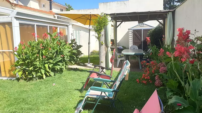 Tharon Plage , 200m de la plage et 400m des commerces . Charmante maison édifiée en 1929, rénovée d'une superficie habitable d'environ 88m² composée comme suit: Entrée avec couloir desservant un séjour avec cheminée et insert, cuisine aménagée ouverte sur une véranda de 13 m², deux belles chambres, dégagement, salle de bains avec douche , un wc. Une chambre avec salle d'eau et wc, cellier et garage. Le tout sur un jardin intimiste sans vis à vis. (4.50 % honoraires TTC à la charge de l'acquéreur.)
