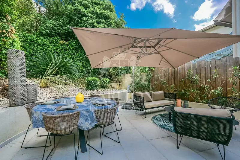 Située dans un environnement calme et verdoyant, au sein d'une petite copropriété, cet élégant mazet mitoyen de 89 m2 entièrement rénové vous séduira par son agencement moderne et ses extérieurs accueillants.