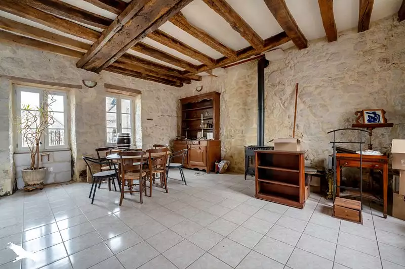 SECTEUR SAUMUR NORD - A quinze minutes de SAUMUR, dans un village avec services et commerces, vous trouverez dans cette maison ancienne l'authenticité de l'ancien au travers des poutres et de la pierre. La terrasse permet d'envisager de profiter d'instants au calme. La pièce de vie est spacieuse. Cave.
