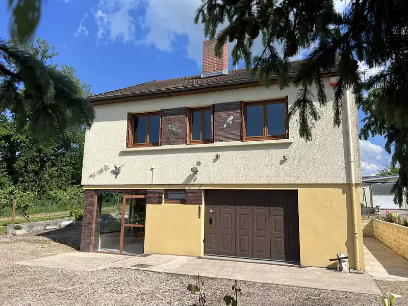 EXCLUSIF ! VILLEFARGEAU, pavillon F4 sur sous-sol comprenant : entrée, salon-séjour avec insert, cuisine équipée, 2 chambres, salle d'eau. Chauffage gaz. Garage, véranda. Terrain clos de 2570 m² avec partie constructible.